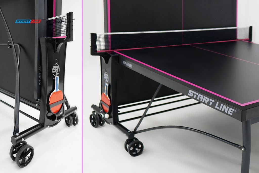 Современные методы построения теннисного стола, позволили усовершенствовать дизайн. Обновленная модель TOP Expert Black отличается уникальным сочетанием стильного черного цвета столешницы и контрастной фиолетовой разметки.