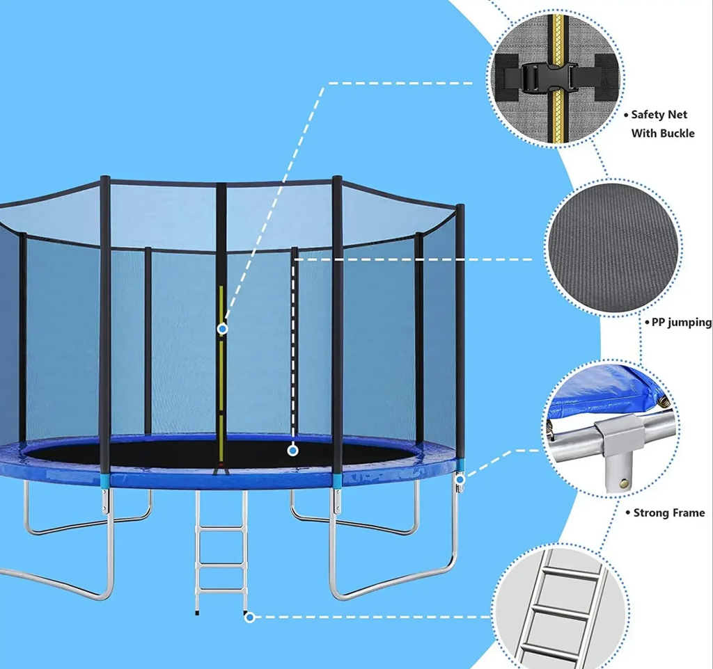 • Пружины выполнены из высококачественной стали, которые имеют повышенную защиту от износа и растягивания, тем самым позволяя продлить срок службы батута