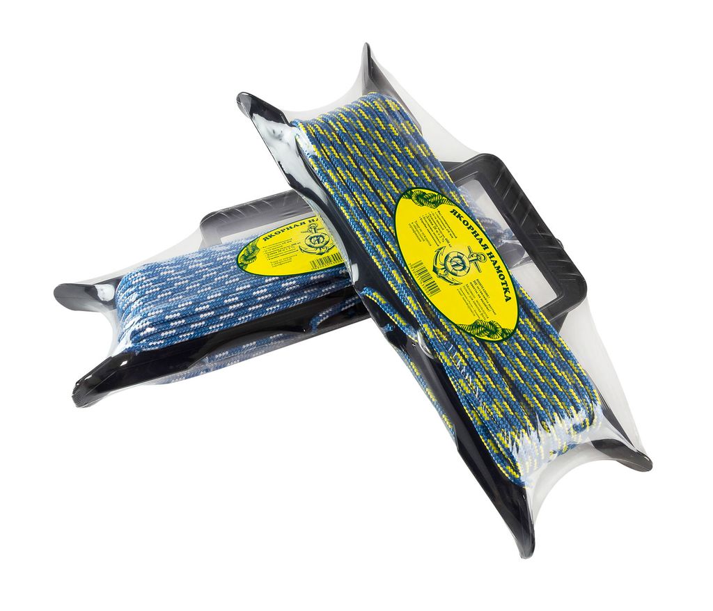 Якорная намотка состоит из полипропиленового фала с сердечником длиной 20 метров плюс карабин и пластикового мотовила с эргономичной ручкой. Не боится УФ излучения. Износостойкий. Легкий. Размеры мотовила: 400 мм – длина, 150 мм – ширина, толщина – 25 мм. Разрывные нагрузки: 6 мм – 400 кг.