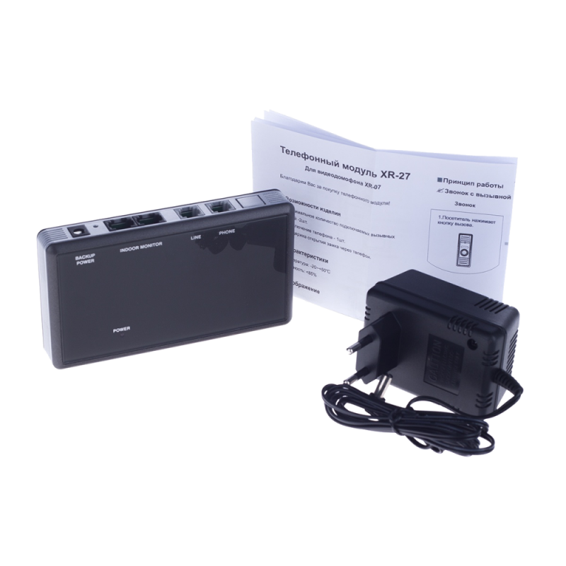 XR-27 Универсальный модуль подключения ЛЮБОГО 4х-проводного домофона к стационарному телефону (телефонной линии), позволяет говорить с посетителем и осуществлять управление замком.