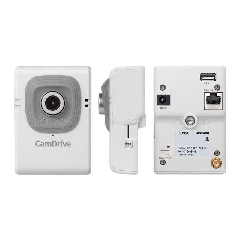 CD320 IP видеонаблюдение 1 Мп, 1/4'' КМОП, 0.3 лк (день)/0.1 лк (ночь), DWDR, 2D/3DNR, объектив 2.5 мм, Н.264, 1280x720 25 к/с, ИК-фильтр, встроенный активный микрофон, Wi-Fi 802.11 b/g/n, WPS, 5В, microSD/SDHC (до 32 ГБ), поддержка сервиса CamDrive