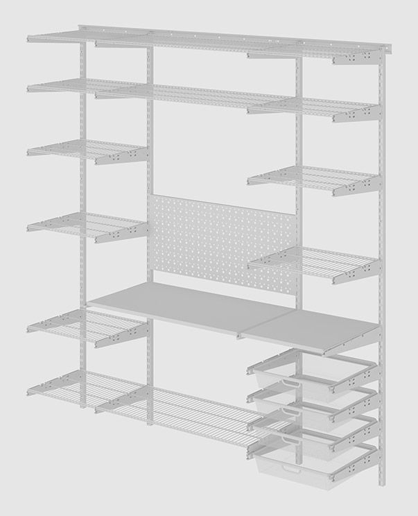 Готовое решение гардеробной системы Гараж 2 позволит функционально организовать инструменты и вещи в вашем гараже. Простота установки и стильный дизайн делают эту систему незаменимой для любого пространства.