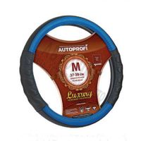 Чехол на руль "AUTOPROFI LUXURY" AP-1070BK/BL (M) натуральная кожа, с прострочкой, черный/синий
