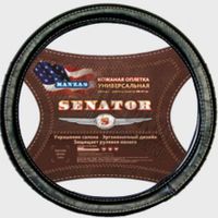 Чехол на руль "SENATOR Kanzas" OPLS0101 кожаный, M, d=38см, черный