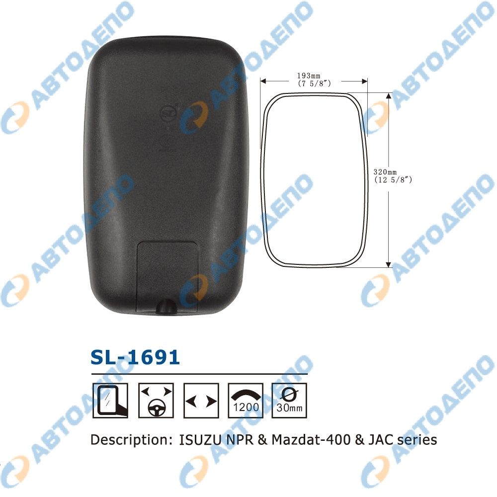Зеркало заднего вида боковое ISUZU ELF, MAZDA TITAN NPR, NQR75 SL-1691