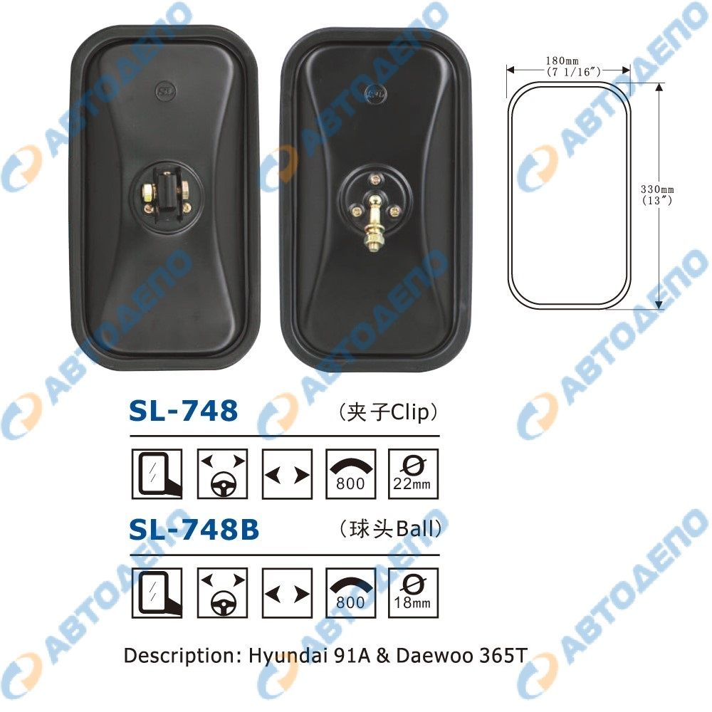 Зеркало заднего вида боковое HYUNDAI, DAEWOO, HINO, ISUZU, MITSUBISHI, NISSAN, MAZDA, TOYOTA SL-748B