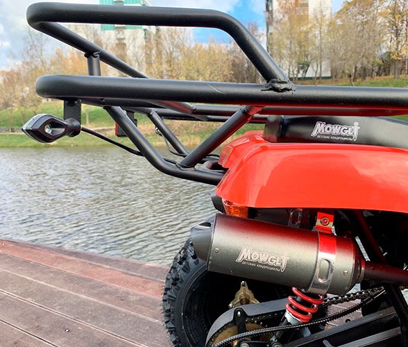 Квадроцикл MOWGLI BOLD 8+ — это детский квадроцикл, который подходит юным райдерам от 6 до 18 лет. Данная модель отличается комфортной конструкции и удобной формой. Бензиновый квадроцикл Маугли оснащен вариаторной трансмиссией и может развивать максимальную скорость до 60 км/ч. Все характеристики в квадрике подобраны таким образом, чтобы ваш ребенок смог в безопасности обучаться езде на мототранспорте. ДВИГАТЕЛЬ АТВ Маугли Болд оснащен бензиновым двигателем мощностью 10 л.с. и объемом 124 кубов, что обеспечивает отличную проходимость и динамику на дороге. Благодаря системе воздушного охлаждения, данная модель ATV подходит для активного отдыха, спорта и преодоления легкого бездорожья. ОСОБЕННОСТИ И БЕЗОПАСНОСТЬ ATV quad bike MOWGLI отличается компактными размерами и простотой в управлении благодаря электронной панели управления. Мотовездеход также отличается преимуществами: ● ограничение скорости; ● родительский дистанционный пульт с возможностью заглушить и завести квадроцикл на расстоянии до 50 метров; ● стальная рама и закрытая платформа для ног; ● ножной тормоз (дисковый гидравлический) на задние колеса; ● надежный амортизатор для удобной езды. ГАРАНТИЯ И ДОСТАВКА Мы уверены в качестве нашей продукции и предоставляем 1 год гарантии на детский квадроцикл. Для вопросов свяжитесь с нами по телефону на официальном сайте или оставьте заявку — наши консультанты быстро ответят. Доставка мототехники осуществляется по всей России в срок от 3 дней. Комплект запчастей MOWGLI BOLD 8+