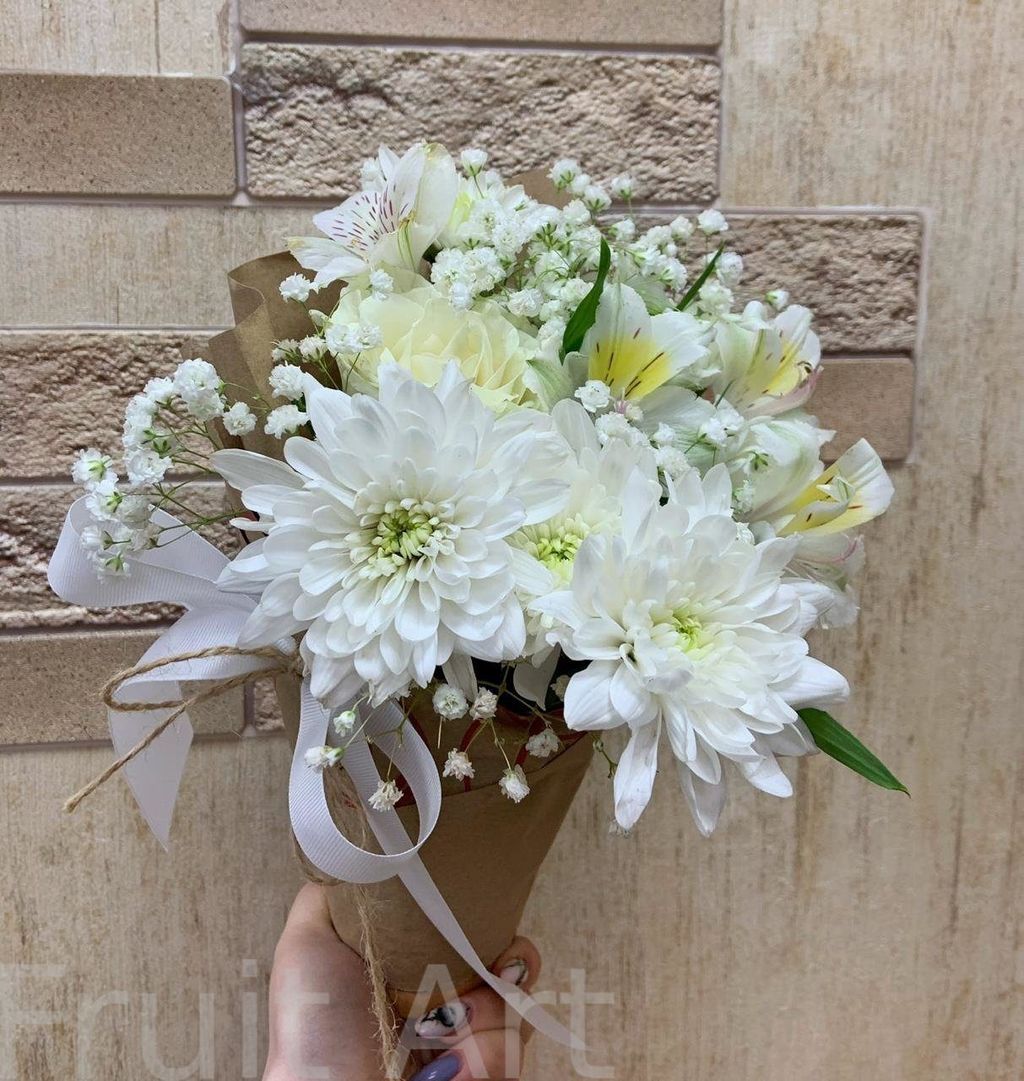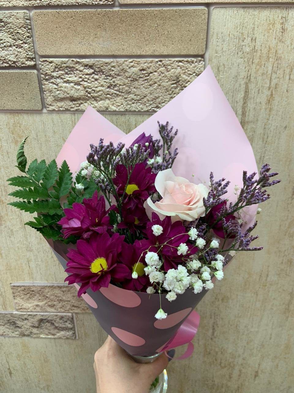 Красивая ромашковидная хризантема "Катенька" такая же милая как и само ее название. Очень красиво смотрится этот цветок как в сольном сочетании, так и в цветочных композициях. -