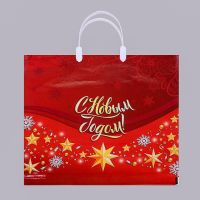 Пакет полиэтилен [36*35] "Золотые звезды" 90мкм с пластиковой ручкой