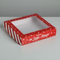 Коробка сборная с окном [16,5*11,5*05] "Сердца"
