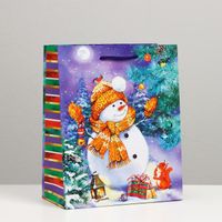 Пакет полиэтилен [34*35] "Морозное настроение" 100мкм с пластиковой ручкой