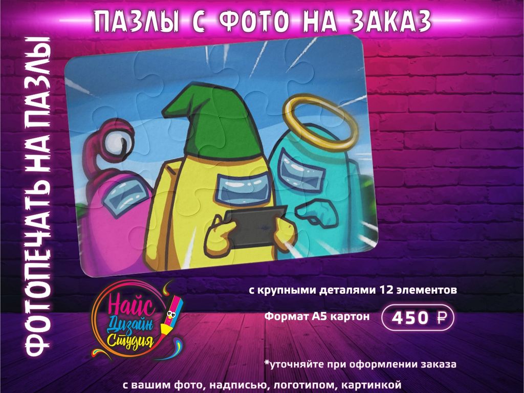 Пазл картон [20*29 см] 120 элементов (с печатью принта, надписи, фотографии)