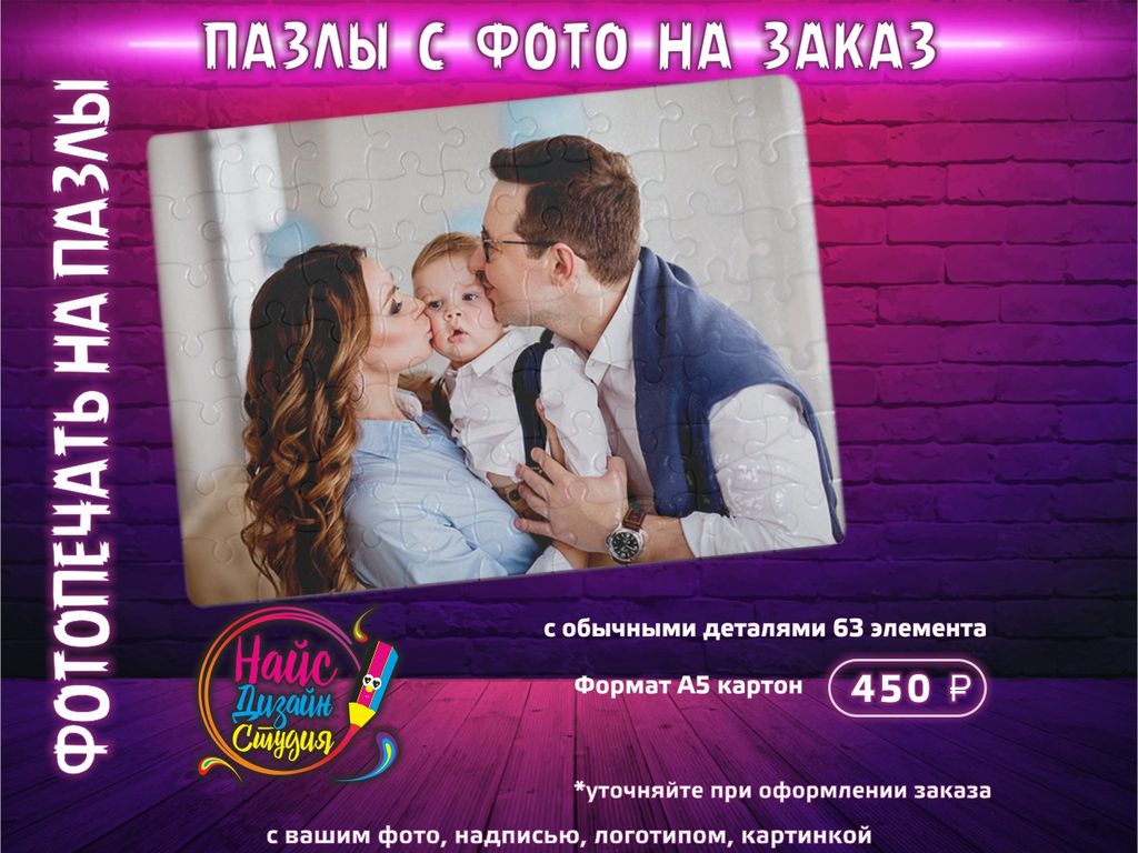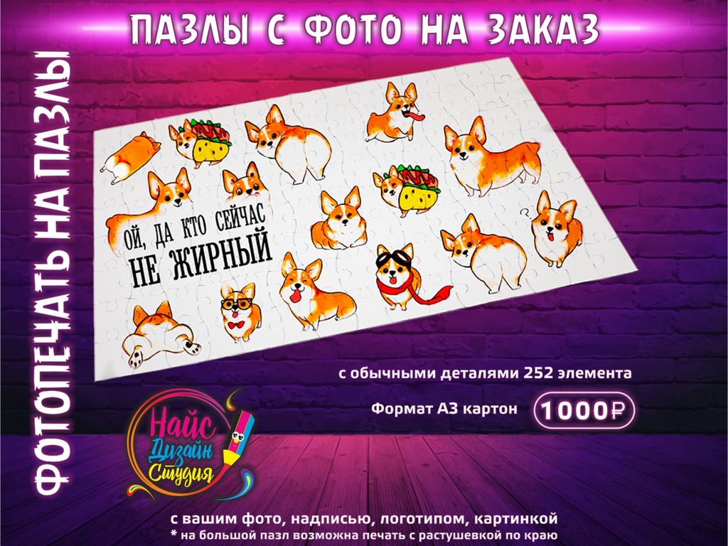 Пазл картон [26*38см] 252 элемента (с печатью принта, надписи, фотографии)