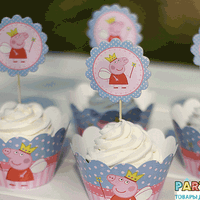 Капкейки и медальки для украшения в стиле Свинка Пеппа, 12 комплектов. Входят в коллекцию Свинка Пеппа -