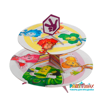 Двухъярусная стойка для кексов и пирожных Фиксики. Отличное решение для украшения праздничного стола на дне рождения в стиле Фиксики. -