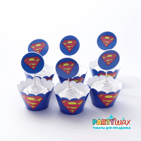 Капкейки и медальки для украшения в стиле Супермен, 12 комплектов. Входят в коллекцию Супермен -