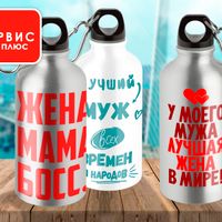 Бутылка спортивная [600мл] жене/мужу [бутылка с печатью, заказ на сайте, онлайн конструктор, каталог принтов]