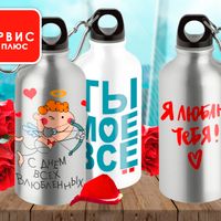 Бутылка спортивная [600мл] на 14 Февраля [бутылка с печатью, заказ на сайте, онлайн конструктор, каталог принтов]