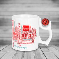 Кружка керамика, глянцевая, белая с баскетбольным мячиком на ручке [310мл] (с печатью принта, надписи, фотографии)