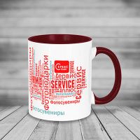 Кружка керамика, глянцевая, белая с бордовыми внутренней заливкой и ручкой [310мл] (с печатью принта, надписи, фотографии)