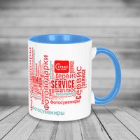 Кружка керамика, глянцевая, белая с голубыми внутренней заливкой и ручкой [310мл] (с печатью принта, надписи, фотографии)