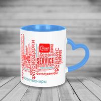 Кружка керамика, глянцевая, белая с голубыми внутренней заливкой и ручкой в форме сердца [310мл] (с печатью принта, надписи, фотографии)