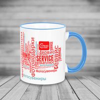 Кружка керамика, глянцевая, белая с голубыми ободком и ручкой [310мл] (с печатью принта, надписи, фотографии)