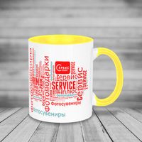 Кружка керамика, глянцевая, белая с желтыми внутренней заливкой и ручкой [310мл] (с печатью принта, надписи, фотографии)