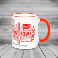 Кружка керамика, глянцевая, белая с оранжевыми ободком и ручкой [310мл] (с печатью принта, надписи, фотографии)