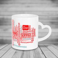 Кружка керамика, глянцевая, белая с фигурной ручкой в форме сердца [310мл] (с печатью принта, надписи, фотографии)