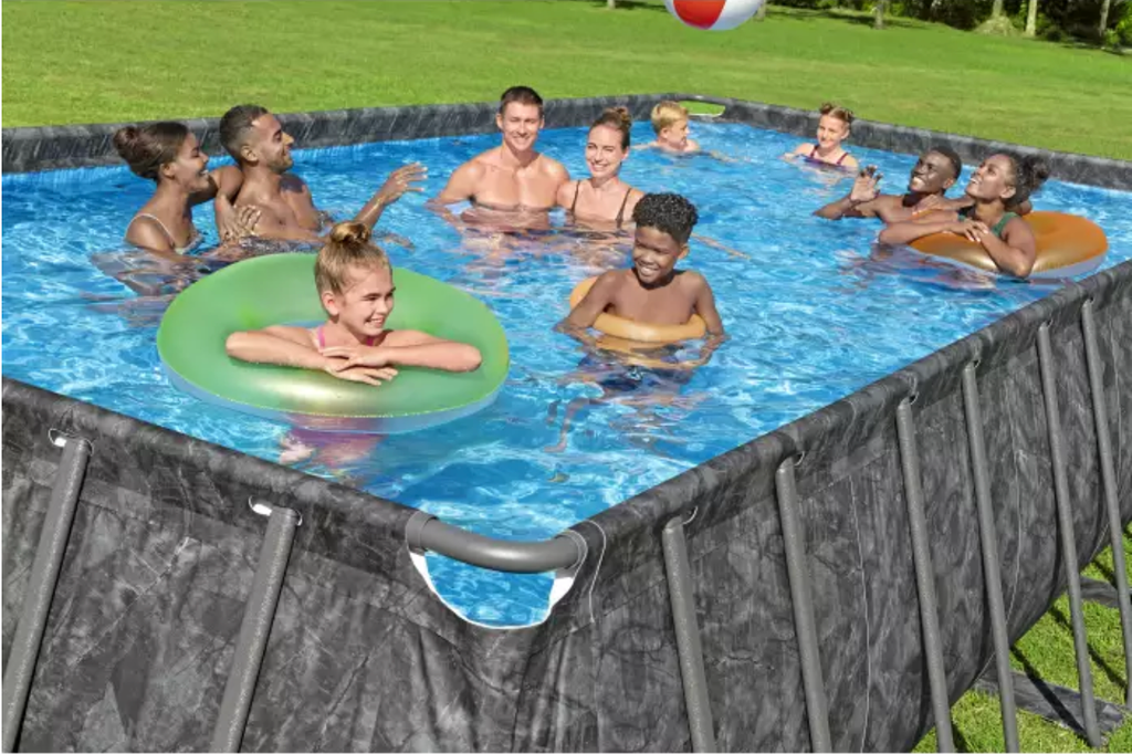 Каркасный бассейн APX 365 предлагает огромное пространство для развлечений всей семьи. Устойчивые к разрывам и УФ-излучению боковые стенки из материала TriTech надежно выдерживают нагрузки, вызванные весом и движением. Облицовка бассейна с всесезонной защитой Polar-Shield обеспечивает зимостойкость бассейна. характеристики. Коррозионностойкая оцинкованная стальная рама с антипригарным покрытием. Система ClickConnect предотвращает контакт металла с металлом и позволяет быстро собрать стальную раму. Чтобы собрать стальную раму и облицовку бассейна, 2-3 человека требуют около 60 минут. Наружные стены под темный мрамор, внутренняя облицовка из голубого мрамора.