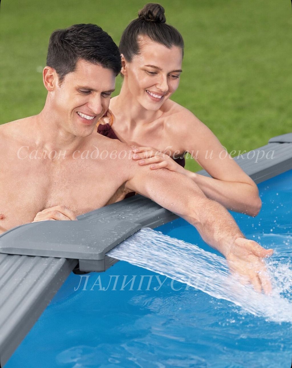 В комплект входит удобная лестница с площадкой, которая позволяет легко и быстро войти в бассейн, а так же песочный фильтр, подстилка и тент. Кроме этого, в комплекте к бассейну идет водопад с LED подсветкой. Конструкция каркасного бассейна не имеет острых углов, что обеспечивает безопасную эксплуатацию. Песочный фильтр гарантирует высокое качество фильтрации. Бассейн Hydrium станет лучшим приобретением для прекрасного времяпрепровождения и замечательного отдыха.