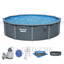 Этот набор для бассейна включает в себя песочный фильтр, поверхностный скиммер, лестницу, подстилку, покрытие на бассейн и дозатор химикатов ChemConnect™. Песочный фильтр является хорошей альтернативой традиционному картриджному фильтрующему насосу с более длительным сроком службы, а поверхностный скиммер прикрепляется к стенке бассейна, чтобы вместе с фильтром удалять из воды нежелательный мусор. Дозатор химикатов ChemConnect обеспечивает стабильный уровень хлора по всему бассейну.