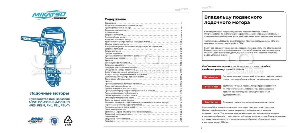 В комплектацию мотора Микатсу входит генератор переменного тока, способный питать стояночные огни и походные электроприборы. Все детали защищены антикоррозийным сплавом. Каждая модель легко запускается, проста в управлении и обслуживании. Двухтактные моторы Mikatsu M30FES выбирают профессионалы и любители для простого отдыха на воде и для использования в коммерческих целях. Вы найдёте в двухтактном семействе Mikatsu подходящего для себя надёжного спутника