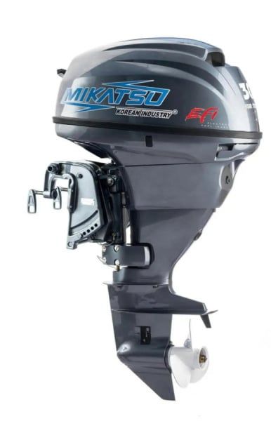 Подвесной лодочный мотор Mikatsu (Микатсу) MEF30FEL-EFI отличный выбор для тех, кто хочет получить высокую мощность, но не желает переплачивать за высокий расход топлива. Его двухцилиндровый двигатель объемом 498 см3 имеет мощность 30 л. с. При этом потребление топлива составляет всего 9,8 л на час работы. Достигается это благодаря использованию инновационной системы подачи топлива и японских свечей зажигания NGK. Вес двигателя составляет 77 кг, он оборудован 3 передачами – передней, нейтральной и задней. В комплект поставки входят: фирменный внешний бак на 24 л, топливный шланг, набор инструментов и сервисный набор, иллюстрированное руководство на русском языке и сервисная книжка, подтверждающая десятилетнюю гарантию от производителя на данный мотор. Этот ПЛМ имеет различные модификации – с длинным (508 мм) и коротким (381 мм) дейдвудом. Также он оборудован электро-гидроподъемником. Струбцина двигателя подразумевает несколько режимов угла дифферента. Пятислойное лакокрасочное покрытие не только придает стильный внешний вид, но и надежно защищает мотор не только в пресной, но и в морской воде.