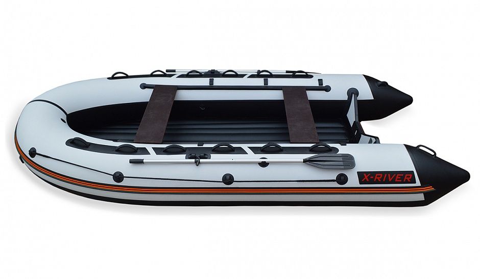 Лодка комплектуется надувным дном низкого давления, которое обеспечивает жесткость корпуса лодки, повышая устойчивость на воде и улучшая управляемость. Кроме того, продольные перегородки выполняют роль дополнительных ребер жесткости: пол практически не уступает по прочности твердым вариантам.