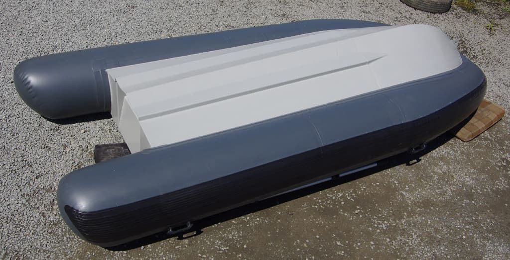 Корпус выполнен из листа алюминия марки АМГ5м толщиной 3мм. Для окрашивания использована двухкомпонентная краска повышенной износостойкости на эпоксидной основе. Баллон (надувной борт) приклеен к специальному ложементу двухкомпонентным полиуретановым клеем. Швы надувного баллона сварные - выполнены без применения клея или еще чего либо. Сиденья и палуба изготовлены из водостойкой фанеры.