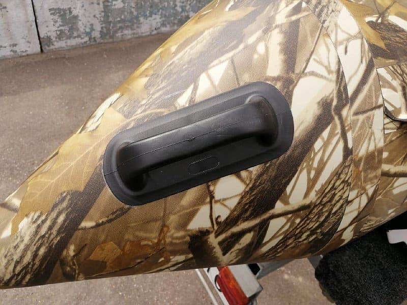 • На концах баллонов лодки имеются ручки для переноски; на носу также установлена ручка и рым-кольцо.