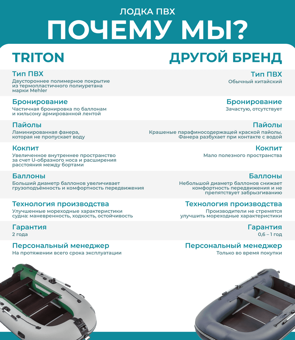 Надувная лодка Тритон изготовлена из высокопрочной синтетической ткани с двусторонним полимерным покрытием ПВХ с добавлением термопластичного полиуретана. Применяемая ткань экологически безопасна, имеет высокие прочностные и климатические характеристики.