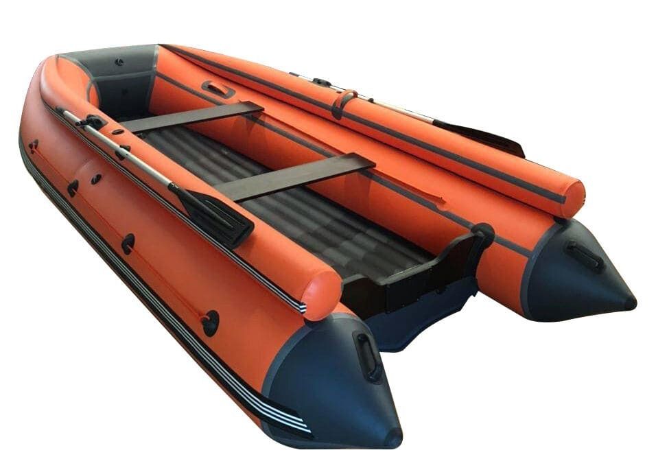 Моторная ПВХ лодка Orca 380 НД с фальшбортом оранжевый/черный предназначена для рыбалки, охоты и небольших водных прогулок по спокойной воде или небольшим волнам. Благодаря приподнятому носу может эксплуатироваться как в гребном варианте, так и с подвесным лодочным мотором на небольших водоемах и в прибрежной зоне морей.