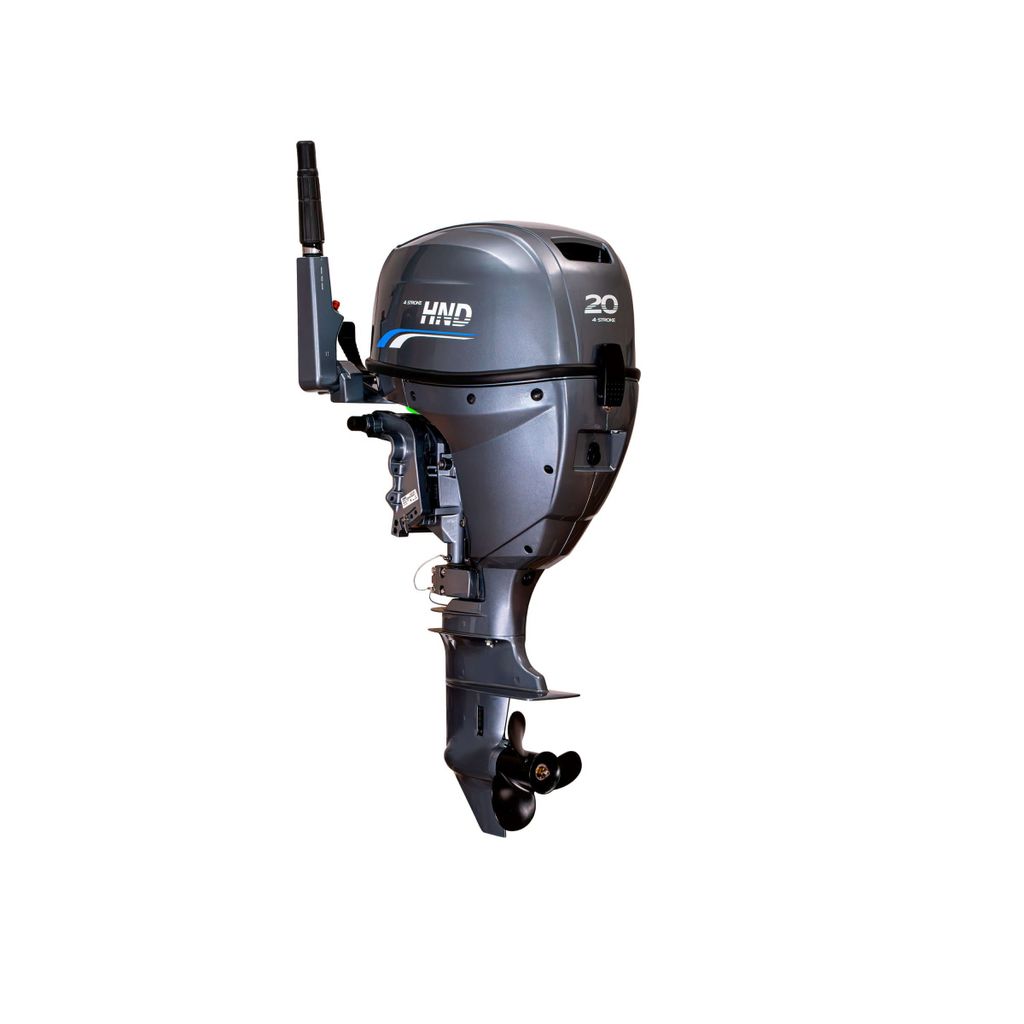 Представляем 4-тактный подвесной лодочный мотор HND 20 FEHBS номинальной мощности 20 лошадиных сил и рабочим объемом 345 см³. Мощный, но легкий подвесной мотор HND 20 FEHBS обеспечивает высочайшую производительность. 20-сильный мотор - отличный выбор для многих лодок. Расшифровка МТО: F - 4-тактный двигатель; E - электростартер; H - румпельное управление; B - литиевый аккумулятор в комплекте; S - короткий дейдвуд