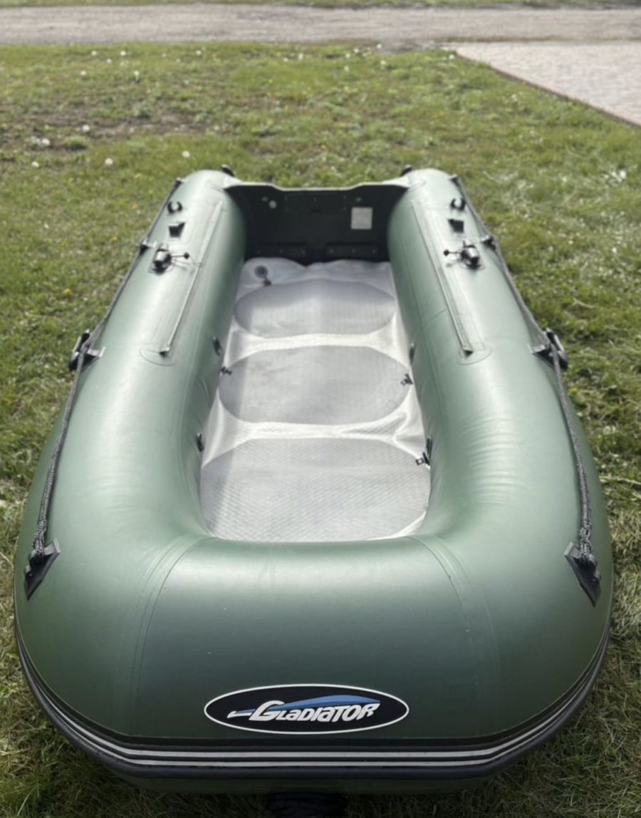 Надувная лодка ПВХ ГЛАДИАТОР Light B330AD создана для профессиональной охоты и рыбалки. Модель выдерживает самые суровые условия эксплуатации. ПВХ плотностью 850/1100 г/м, бронированное дно, усиление полиуретановой лентой с внешней стороны баллона - все это придает лодки Гладиатор мощь и надежность. Баллон имеет увеличенный диаметр. Непотопляемость Гладиатор B330AD обеспечивают три изолированных воздушных отсека. Надувной киль также увеличивает плавучесть и улучшает мореходные характеристики. На всех моделях лодок ГЛАДИАТОР с индексом — AD, в качестве пола применяется надувной пайол высокого давления — Air-deck. Аирдек — это надувной матрас, конструктивно состоящий из множества горизонтальных и вертикальных перегородок из ПВХ ткани. При заполнении аир дека воздухом он становится очень жестким и позволяет свободно стоять в лодке и перемещаться. Лодка Гладиатор B330AD отличается богатым оснащением. Здесь есть все для рационального размещения груза, удобства экипажа и комфортного управления. Сиденья перемещаются вдоль бортов, под ними устанавливаются сумки, в которых можно спрятать нужные в плавании вещи. Также в комплект лодки ПВХ Гладиатор, жесткий пол, насос, весла и две сумки для упаковки. Данная модель является бывшей в употреблении, но состояние новое, пробега нет, сколов и иных дефектов нет. Использовался 1 раз.