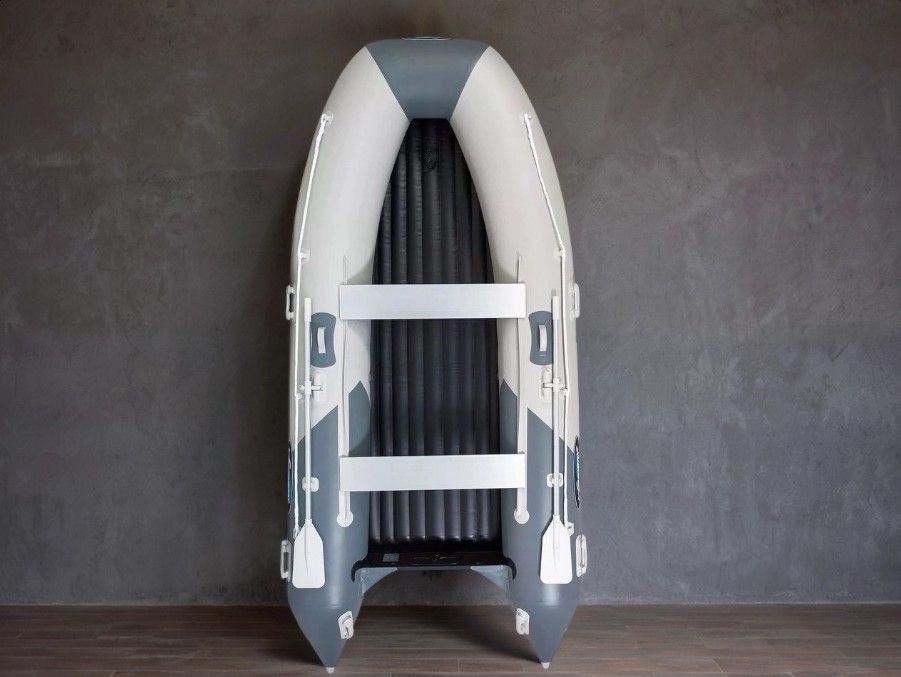 В лодке Гладиатор Air E 350 LT с полом НДНД внутренние борта не подвержены истиранию в связи с отсутствием жестких пайолов со стрингерами.