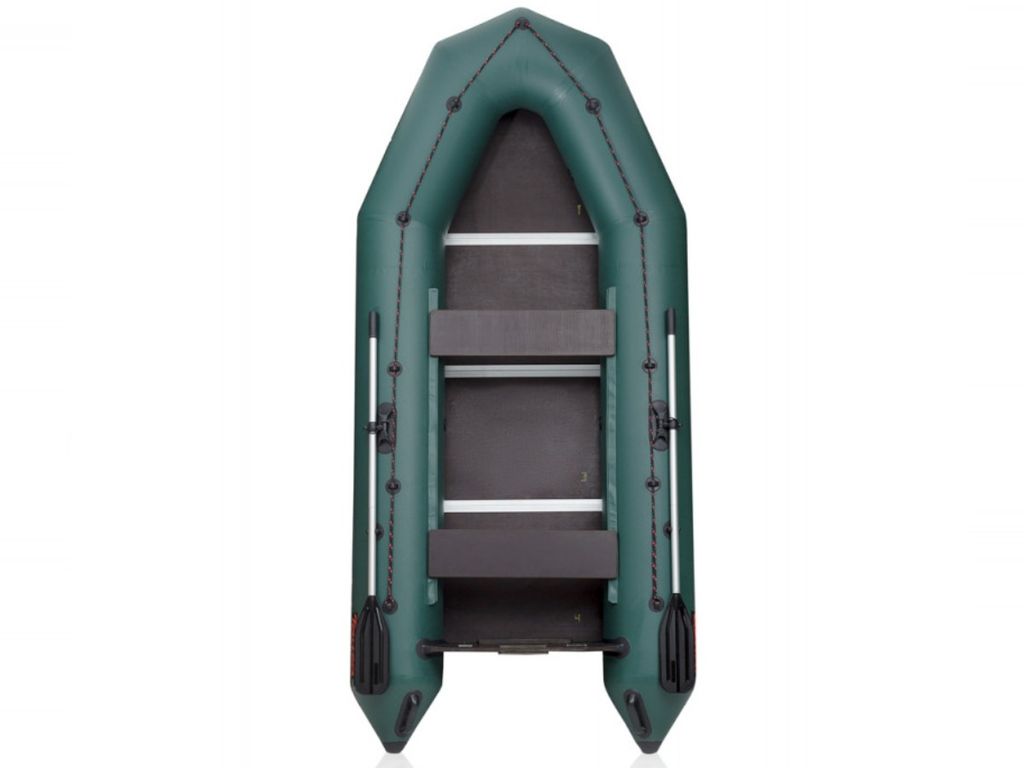- Тип дна: Пол составной с профилями — прочная конструкция, обеспечивающая хорошую жесткость и устойчивость лодки во время эксплуатации.