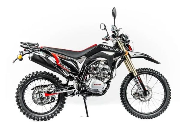 Мотоцикл Motoland Кросс FC250 (2020 г.) - современный транспорт для езды по городским дорогам и пересеченной местности. Отлично подходит для соревнований по мотокроссу. Двигатель мощностью 14 л. с. позволяет набирать разгон до 120 км/ч. Имеет хорошую проходимость, прекрасно ведёт себя на песке и грунте, подходит для асфальтовых дорог. Стальная рама выдерживает вес пользователя до 150кг. Оснащается светодиодными поворотниками и стоп сигналами, блокировкой замка зажигания. Скромный расход топлива, который почти не зависит от того, с какой скоростью едет мотоцикл и на каких оборотах работает двигатель.