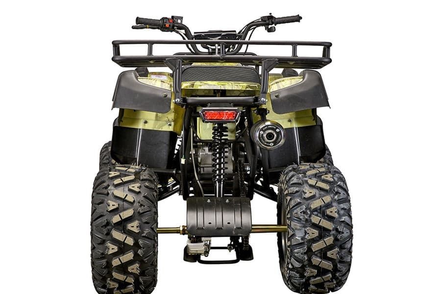 Удлиненное сиденье и более широкие подножки позволит удобно расположиться водителю и пассажиру. Колеса 10 радиуса делают квадроцикл более проходимым и высоким (дорожный просвет - 40 см). Максимальная нагрузка - до 200 кг. На квадроцикле 150 установлен передний и задний багажники, которые выдерживают нагрузку до 100кг каждый. Расход топлива - 5 литров на 100км.