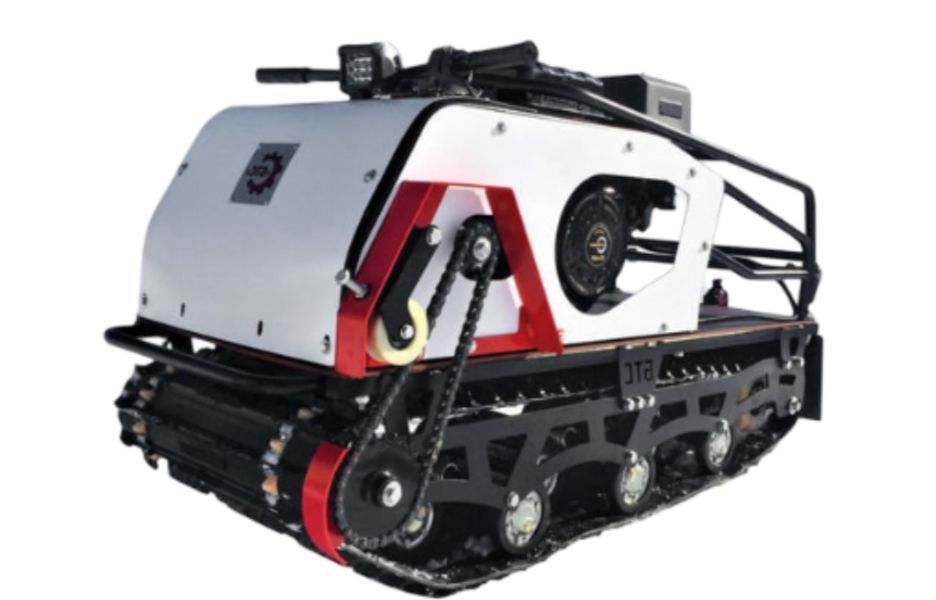 Имеется гусеничный движитель на балансирах катков с резиновым ободом и обслуживаемым полузакрытым подшипником. Также установлен передний балансир катков 4-х пружинный, средний и задний 2-х пружинный. На буксировщике установлена мощная светодиодная фара (12 SMD 36W) 1320 Lm. Роликовый натяжитель цепи упрощает натяжку цепи без снятия облицовки.