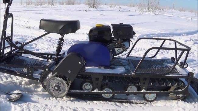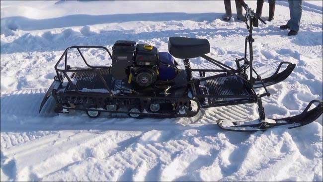 Мотобукс весит 100 кг, а размеры его составляют 185 см в длину, 60 см в ширину и 75 см в высоту. Модель оснащена гусеницей шириной 500 мм. Гусеница в сочетании с катковой подвеской способна проходить спокойно по льду и даже по территории без снега.