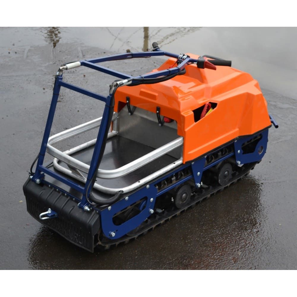 Руль расположен у основания рамы делает машину максимально управляемой, маневренной и удобной для пользователя. Пол мотобуксировщика изготовлен из полиэтилена низкого давления (ПНД). Материал отличается стойкостью к гниению, на нем не образуется наледь. В подвеске используются усиленные стальные пружины. В целом конструкция позволяет менять склизовую на катковую и обратно без усилий и переделки самого буксировщика.
