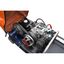 Для удобства управления, компактный блок управления вынесен на руль. Буксировщик оснащен усиленным фаркопом с подпружиненной собачкой. Для безопасной работы, буксировщик имеет чеку аварийного отключения двигателя.